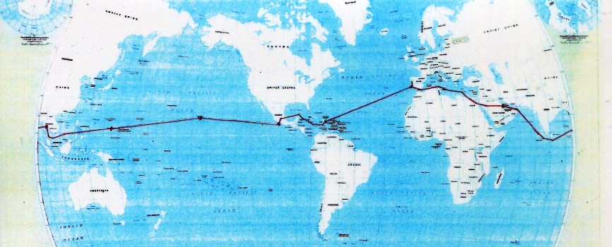 Nous sommes dans les temps, et la vie à bord s’organise de façon conviviale et joyeuse pour ce long trajet océanique. Alors que nous approchons du méridien changement de date (180°) Jean Boyé, en fonction sur ce parcours, s’adresse aux passagers de la manière suivante : « Dans quelques secondes nous passerons du présent au futur qui deviendra notre présent. Si vous le décidiez à l’unanimité, je ferais demi-tour et en quelques secondes nous retournerions dans le passé ! » La fatigue aidant, pas de réaction de leur part et nous sommes passés du jour au lendemain dans ce périple sans nuit.