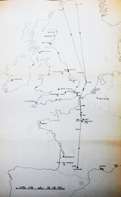 Toulouse, samedi 12 décembre 1970, le Concorde 001 décolle à 7h06 pour se rendre à Brétigny sur Orge. Atterrissage à 7h41 après un vol sans problème de 41 mn à une altitude maximum de 25 500 pieds. Brétigny est la base principale du CEV qui a en charge, au titre de l’Etat, le suivi du programme Concorde. Sa proximité de la région parisienne explique le choix de cet aérodrome pour le vol de présentation au Ministre d’Etat de la Défense Nationale.